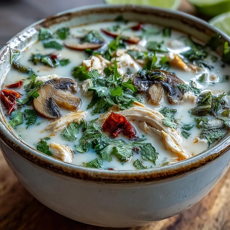 Bookmark The first time I tasted real Tom Kha Gai, I was sitting in a small Bangkok restaurant wedged between two office buildings, and the soup arrived in a bowl so steaming hot I had to lean back. That creamy coconut broth with its whisper of lemongrass and the gentle bite of galangal completely rewired what I thought soup could be. Years later, I recreated it in my own kitchen on a grey afternoon when I needed something warm and alive, and somehow that first spoonful transported me right back to that humid street corner. Now I make it whenever someone needs comforting or when I want to remember that not all the best meals happen in restaurants.