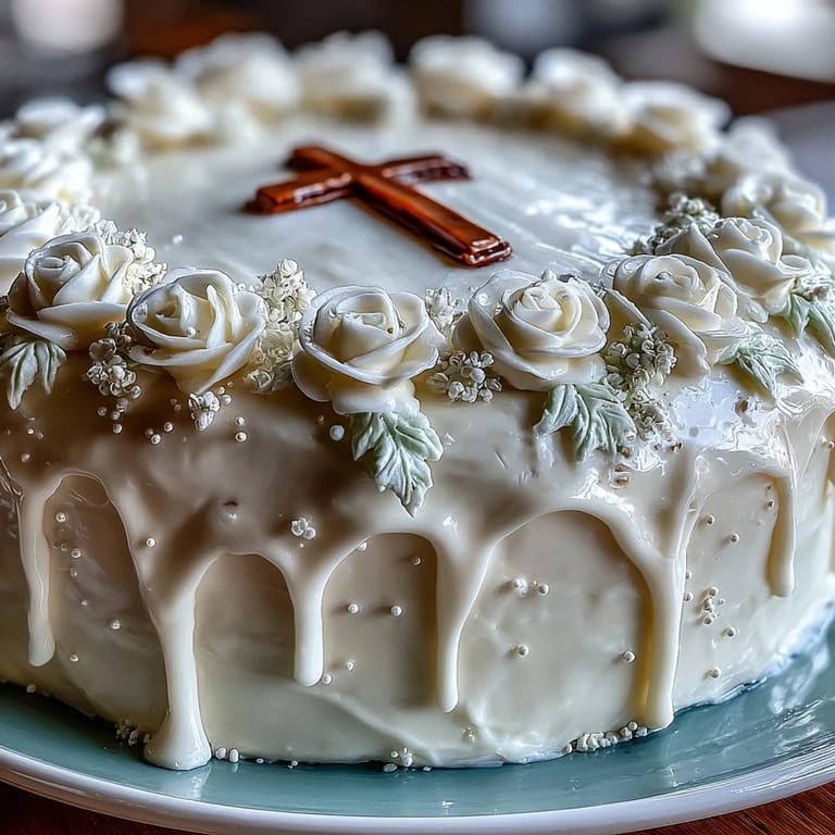I watched a baker friend frost a celebration cake once with the kind of focus usually reserved for important work, and I realized that's exactly what this is. She moved her offset spatula with quiet confidence, turning the cake slowly, creating smooth walls of buttercream. When she placed the cross on top and stepped back, there was this pause—like she was honoring both the craft and the occasion at the same time. That's when I understood why this cake matters; it demands your attention because the people eating it will remember the care you put in.