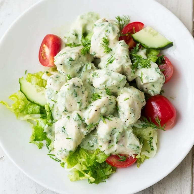 Bookmark My neighbor showed up one afternoon with a jar of something bright green, promising it would change how I felt about salads forever. I was skeptical until I tasted that first spoonful of tangy, herb-packed dressing clinging to perfectly tender chicken. The combination of creamy yogurt and fresh herbs felt like summer in a bowl, and I immediately asked her to write down every single ingredient. Now I make this salad whenever I need something that feels light but actually keeps me full, and every time I blend that dressing, I think of her standing in my kitchen, laughing at my surprise.