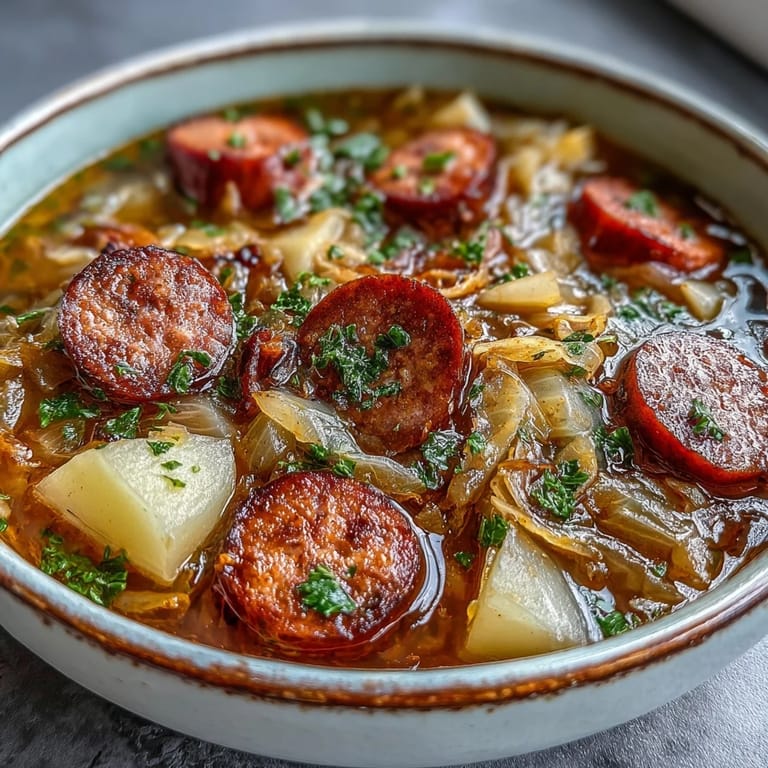 Bookmark My tiny apartment kitchen was freezing last January, the old radiator barely putting up a fight against the drafty windows. I'd bought a head of cabbage at the farmers market on impulse and some smoked sausage from the Polish deli down the street, not really having a plan beyond wanting something hot and substantial. That afternoon, as the soup bubbled away, my roommate wandered in, wrapped in a blanket, asking what smelled so incredible. We ate it standing up at the counter, steam fogging up the windows, and I've made it at the first sign of cold weather ever since.